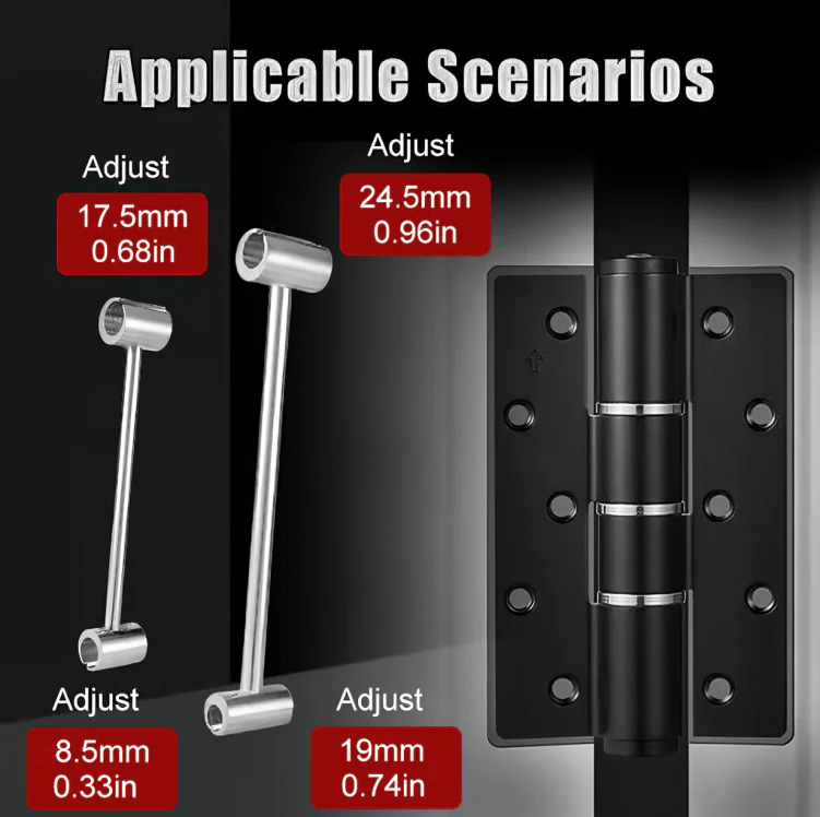- Instantly fixes sagging and misalignment: Corrects scraping, sticking, and uneven doors by precisely adjusting hinge alignment in minutes.